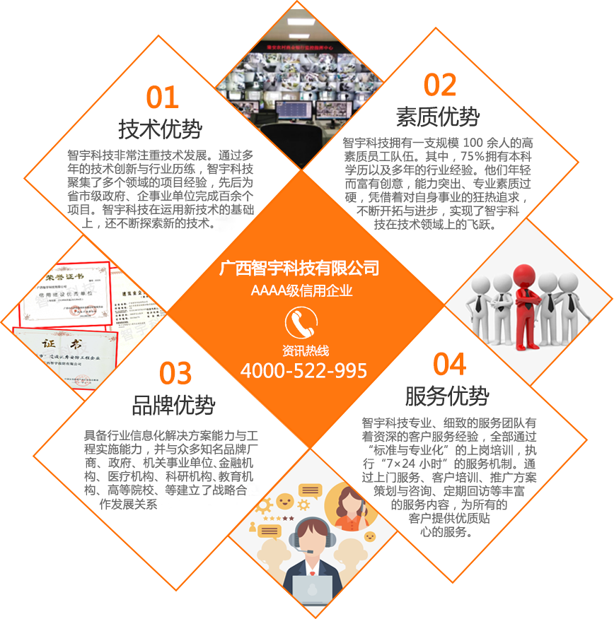 廣西智宇科技有限公司,自1995年成立以來,已發(fā)展成為一家高新技術(shù)企業(yè),擁有多家分公司,遍布南寧、桂林、玉林、河池、扶綏、百色、欽州、防城港等地。憑借30年的專業(yè)經(jīng)驗和技術(shù)儲備,智宇科技已成為一家行業(yè)領(lǐng)先的集團(tuán)企業(yè),致力于運用前沿科技產(chǎn)品和技術(shù),為客戶提供高效服務(wù)。